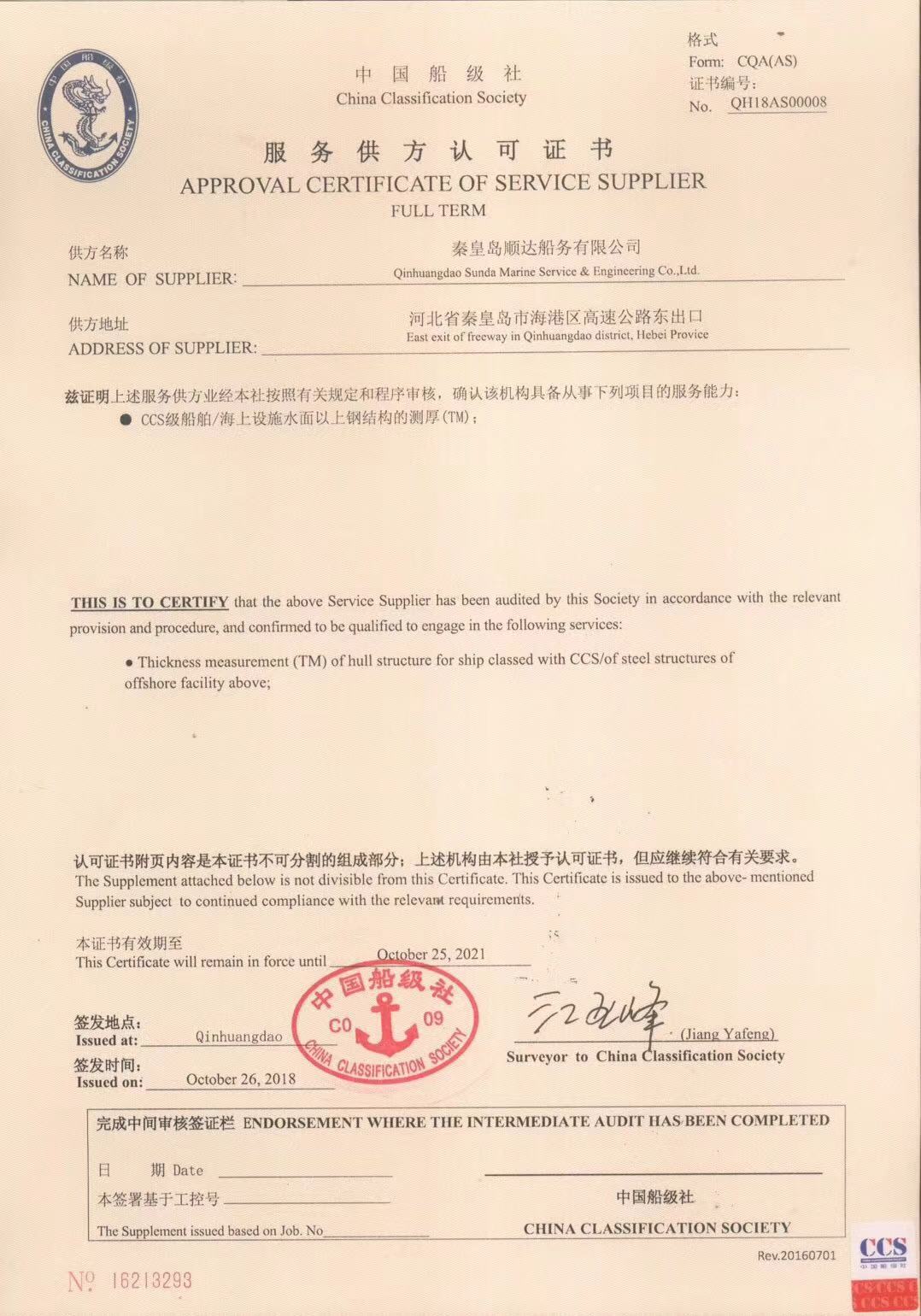 秦皇島順達船務(wù)有限公司位于美麗的海濱城市、中國北方著名的能源輸出大港--秦皇島。公司從事于船舶修理、物料供應(yīng)、水下檢測、船體測厚、消防救生設(shè)備及救生艇檢驗、電氣自動化修理等服務(wù)。 公司自1997年成立至今,先后為國內(nèi)外船東修理、檢驗各類船舶萬余艘,積累了豐富的施工經(jīng)驗。公司現(xiàn)有場地100余畝,員工30余人,以及工程用車若干臺。我們公司一直本著嚴以律己、真誠待人、精益求精、信譽至上的經(jīng)營理念,以優(yōu)質(zhì)的服務(wù)、專業(yè)的施工、合理的收費,得到了國內(nèi)外船東的廣泛認可,贏得了良好的口碑和信譽。 公司已取得了中國船級社(CCS)、美國船級社(ABS)、日本船級社(NK)、德國船級社(DNV GL)等各個船級社的消防救生和救生艇檢驗資質(zhì), ...